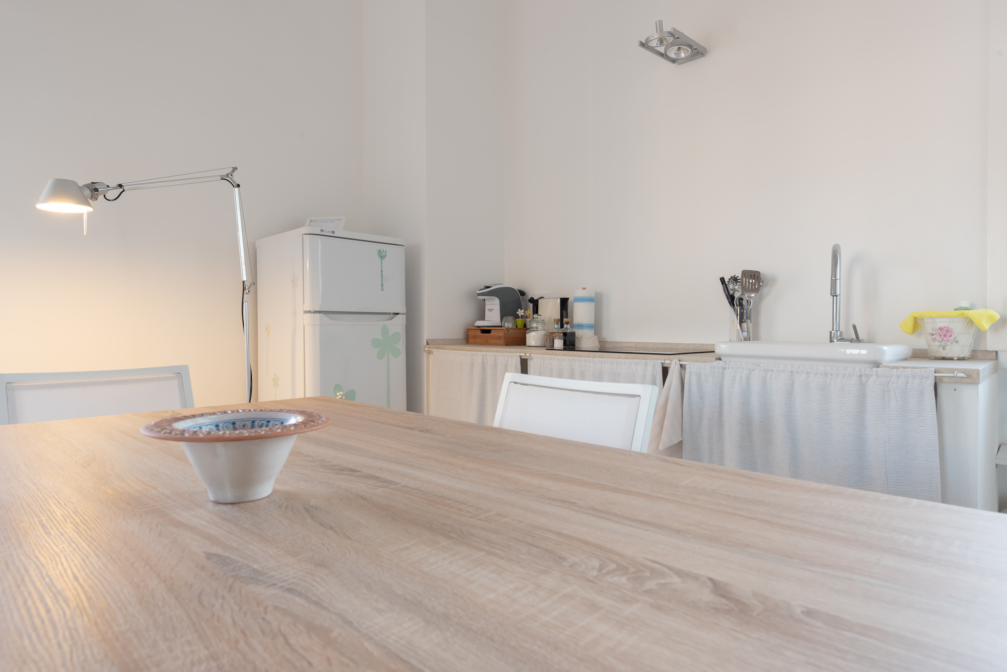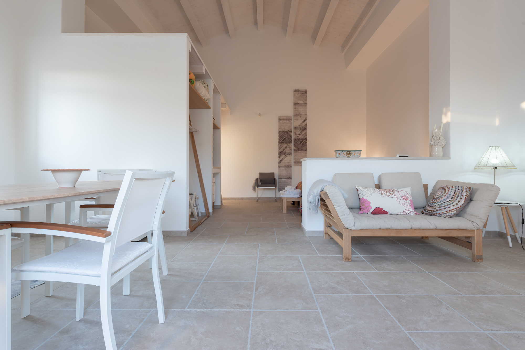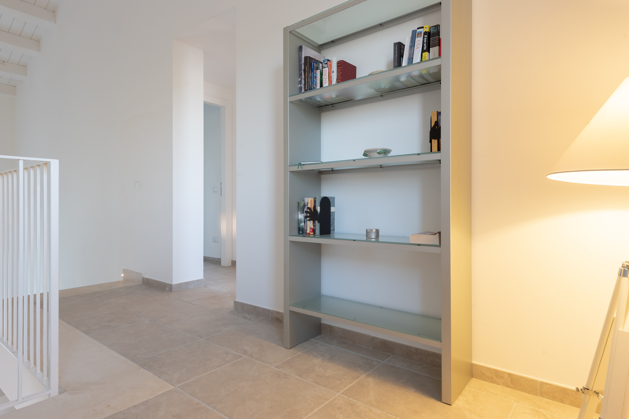 Lo spazio è arredato con legni naturali, trattati biologicamente e, in alcuni casi, appositamente disegnati dai proprietari per i propri spazi espositivi.