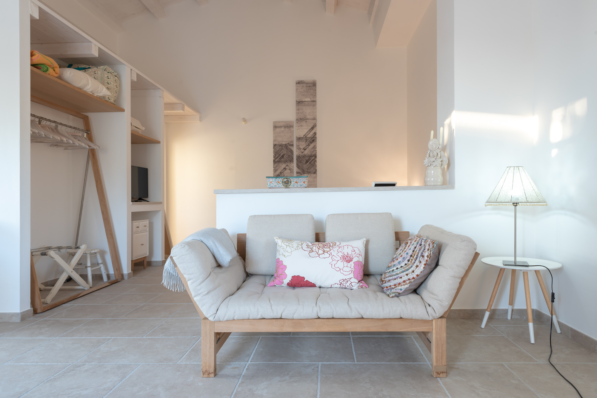 Suggestiva, armoniosa e luminosa suite, decorata con i toni morbidi e rilassanti della terra.